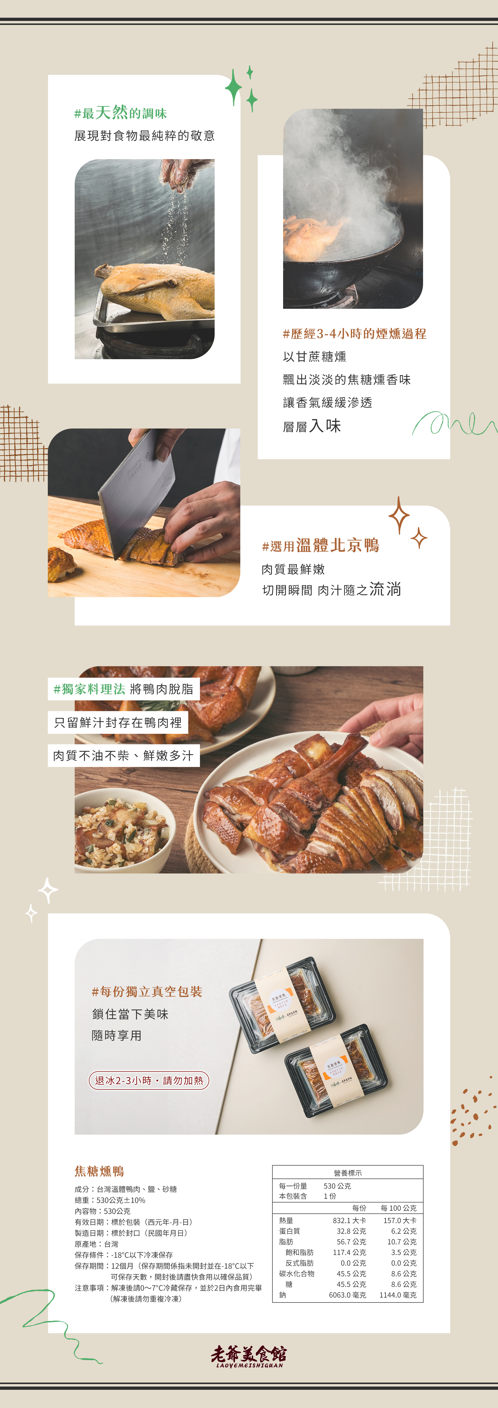 焦糖燻鴨退冰2-3小時即可直接食用(請勿加熱),