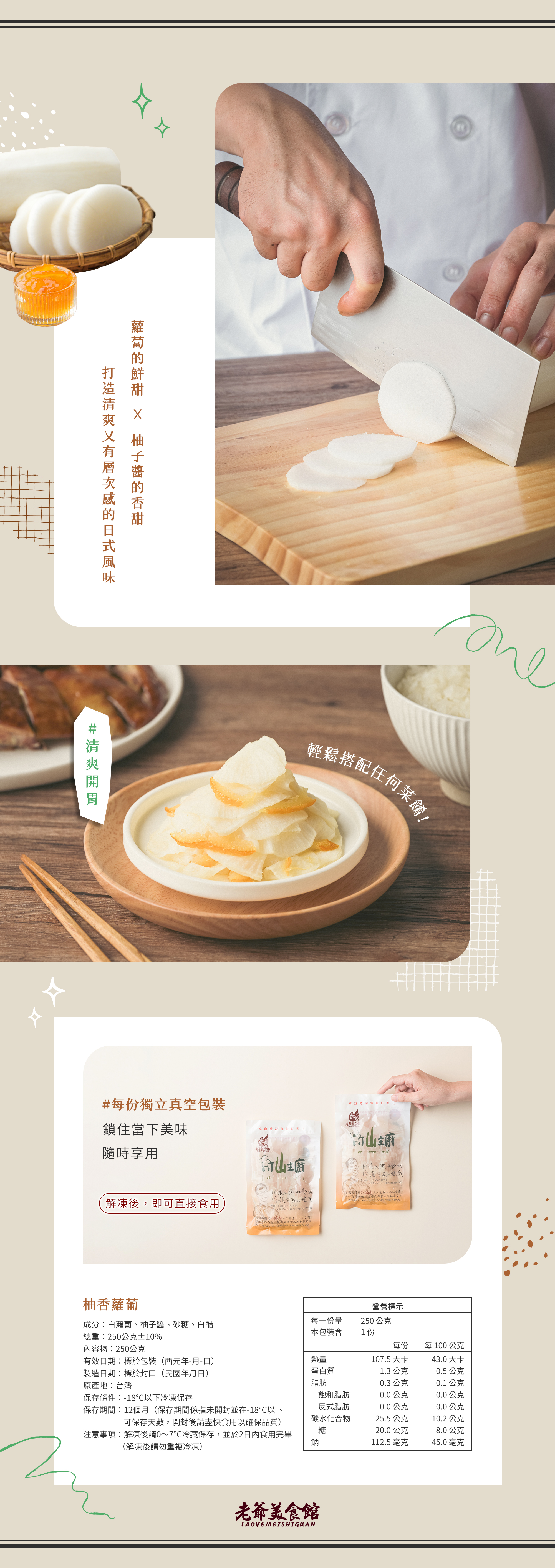 蘿蔔的鮮甜與柚子醬的香甜交織,打造清爽又有層次感的日式風味。最適合開胃解膩、搭配豐盛餐點、或是炎炎夏日作為輕盈的小點。它清新的口感能瞬間打開味蕾,為任何一餐增添一抹日式風情。